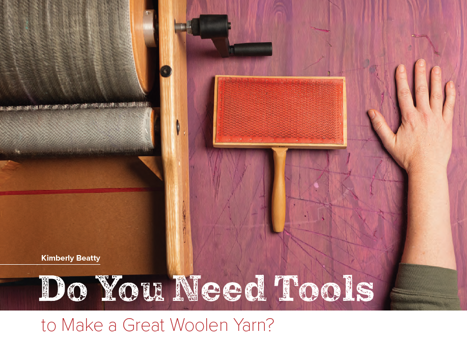 In between those two articles, you’ll find experiments on combing short fibers and carding long fibers (the opposite of the typical prep) and on adding fiber to the intake drum vs the main drum on a drum carder. But do you even need tools to make a great woolen yarn? We cover that too.